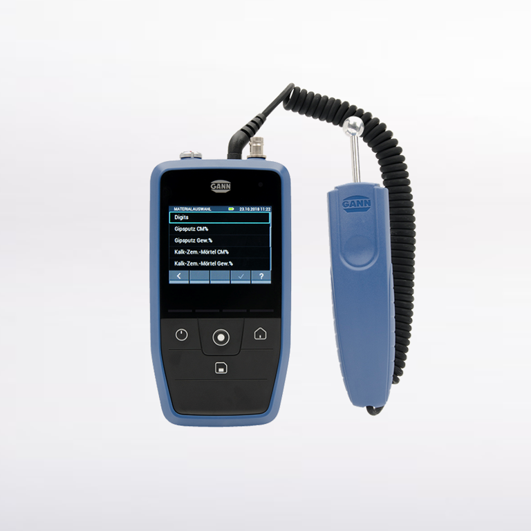 Verschiedene Elektroden werden verwendet, um den elektrischen Widerstand eines Baustoffes zu bestimmen. Dieser wird anschließend sowohl in Digit als auch in Prozent am Messgerät angezeigt. Der Feuchtigkeitsgehalt kann schnell und zerstörungsfrei in den jeweiligen Baustoffen ermittelt und dokumentiert werden. Dieses Messgerät ist nahezu überall einsetzbar. Ein Feuchteraster kann in kürzester Zeit erstellt werden und gibt dem Kunden umgehend einen Überblick über das Schadensausmaß.